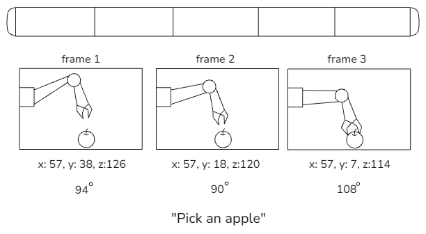 즉, VLA 모델은 각 시각 프레임마다 주어진 시각 정보와 지시문을 보고, 다음에 취해야 할 로봇의 행동 데이터를 예측하는 방식으로 학습된다는 것을 알 수 있습니다.